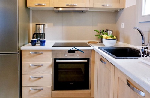 The houses are on two levels. The first floor, which is the main entrance, has a living room with a fireplace, a dining area that seats 4 people and a fully equipped open plan kitchen. Leading off the living room is a large shaded veranda with a dining/seating area, where one can sit and enjoy the sea view and amazing sunsets. Near the kitchen there are stairs leading to the ground level, where there is a bedroom with a double bed, a bedroom with bunk beds and one bathroom with a shower. Both bedrooms have a sea view and balcony doors that lead on to a small terrace.