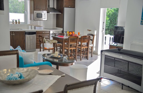 Haritos is a 80spm ground floor apartment, completely renovated in 2021. It is furnished with refinished furniture. The traditional style with fresh modern touches create a comfortable place where you can feel like home away from home. It is suitable for remote work. It offers a wireless printer and a safe box for your safety. The apartment is extremely safe for young children.