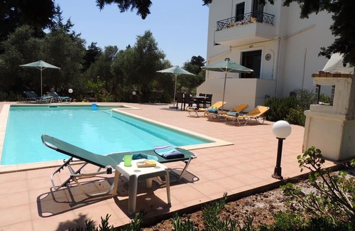 The sparkling 10m x 4m+ pool takes centre stage at rear of the villa and is blessed by a southerly aspect. On long hot summer days it invites you to take a very welcome cooling swim, or just lounge around on the family friendly steps in the Roman end with a refreshing icy drink. The pool terrace is well equipped with sun-beds, umbrellas, a shower, a dining table and chairs, and even a solid brick barbeque that is all set for action. When the sun goes down the enticing aroma of local produce sizzling on the grill, and pretty lighting, creates an enchanting atmosphere that enables you to relax outside enjoying amusing conversation and fine wines from the nearby Dourakis winery well into the night. Clear, balmy evenings are also perfect for star gazing, and the constellation of Pegasus, the magnificent winged horse from Greek mythology, can be seen in the Cretan night sky between July and January.