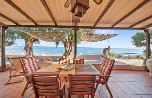 Our Almyriki Beach House is a beachfront house located on the south coast of Crete, on the picturesque beach of Sidonia. Have you ever dreamed of waking up and moments later swimming in the Libyan Sea? Then this is the perfect house to experience your dream. Located on the edge of the beach, the house consists of two bedrooms, an open-plan living room, a fully equipped kitchen, and a bathroom. The house has a large front garden with garden furniture and breathtaking views.