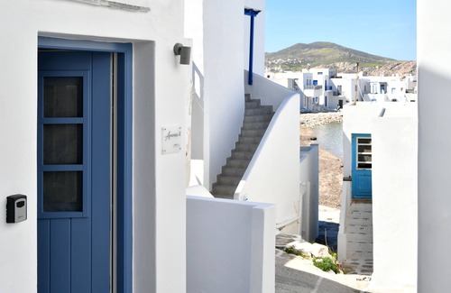 Studio overlooks St. Dimitrios bay and is a breath away from the water.