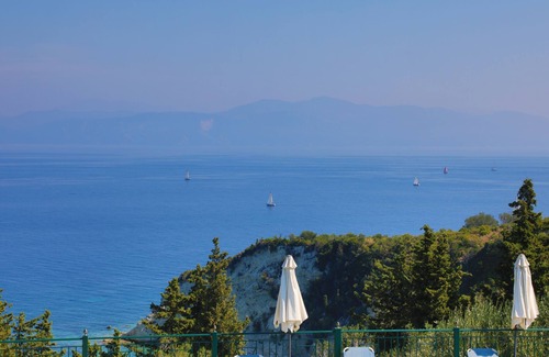 It is set in a private plot, with olive trees and gardens and enjoys fantastic sea views up to the Greek mainland, just 15 minutes walk to Loggos.