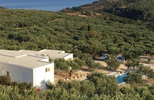 Facilities and distances: grocers 4.5 km, restaurant 3 km, pebble beach 4 km. The site is located on the eastern hills of the Kissamos Bay. The access is directly from the old national road, few minutes from the nearest beach in Nopigia, 10 minutes from Kissamos and Kolymbari. A path among the trees takes you from the shady parking to the main entrance. All around quietness and olive trees, flowers and a spectacular view of the Kissamos bay and the Gramvousa peninsula. Within a five minute walk you can reach the little village of Lyridianà: quietness and a few houses, a water source and the sound of crickets. For tavernas and bars, go to Koleni (5 minutes by car) or to Nopigia (8 minutes by car), where you also find the closest beach. The center of Kissamos (10 minutes by car) offers you a choice of everything: from traditional tavernas to trendy bars, shops and supermarkets.