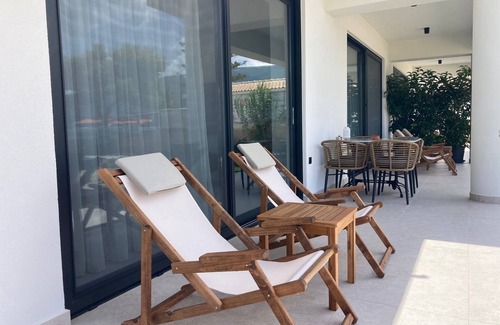 Ayïa suites - Beachfront apartment rentals has 2 Bedrooms , 2 Bathrooms, and max occupancy of 5 people. The minimum rental for this property is 1 nights, but this can change depending on the season you plan on staying. Previous guests have given good rated it, and VRBO labeled it a top-rated Apartment because of the excellent services rendered by the owner or manager of this Apartment, and has consistently provided great experiences for their guests. Most families or guests that use it recommend it to their friends and some of them are repeat guests. Apartment has a friendly neighborhood, and the Alikanas has interesting places to visit. If you want to learn more about the Apartment in Alikanas, such as places to visit and things to do nearby, you can check below to learn more.