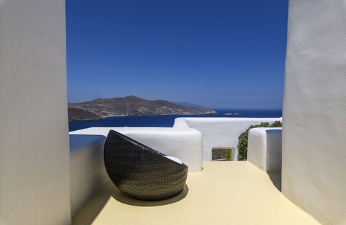 Located at 3 minutes drive from Ftelia beach (one of the best beaches in the world for windsurfing) and at 5 minutes drive from the traditional village of Ano Mera, this villa is ideal for the bohemians or the romantics or just for those who love calmness and elegant simplicity.