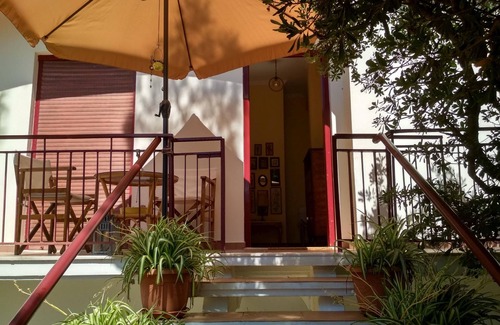 The house was built in 1975 and the bathroom was completely renovated in 2016. From the living room and the kitchen you have direct access to a large, roofed circumferential terrace. Heart of the holiday apartment is the beautiful terrace with daybed and several seating options. Here you can enjoy the fantastic sea view and stunning sunsets. The kitchen is adjoining to the living room. A small hall leads to the bedrooms and the shared bath. The BBQ area in the garden is for the shared use of guests in both holiday apartments.