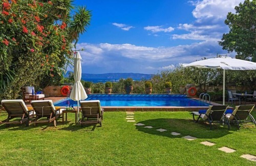 Traditional holiday villa located in the picturesque village of Kaliviani with stunning views of Kissamos Bay. The Cretan Estate, built in 1935, has been carefully restored and furnished to a high standard and has a games room with fitness equipment. In the beautifully overgrown garden with flowers and lemon trees, which offer plenty of shade, a private swimming pool with hydromassage invites you to relax. In the village you will find cafes and taverns. The nearest beach is about 1 km away. Details: Consumption-based energy costs, bed linen, towels, final cleaning, WiFi, fruit basket on arrival, bicycles Not suitable for people with reduced mobility
