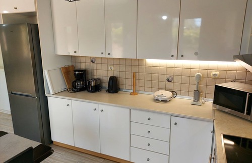 - Single Kitchen-Dining room: The fully equipped kitchen has all modern appliances (fridge, oven, microwave, coffee maker, etc.) and utensils for preparing meals. The open-plan dining area offers a comfortable space for family meals or dinners with friends.