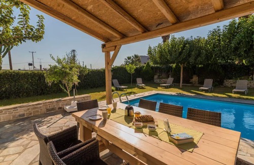 The Villa is a 200 m², detached house with a large, enclosed garden, swimming pool, four terraced bedrooms, a fireplace and central heating. It is ideal for everyone wishing to spend their holidays in southern Crete.