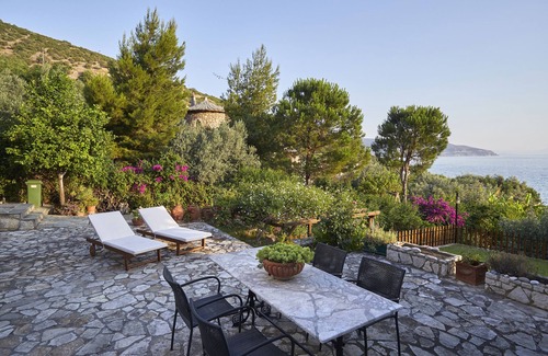 Family country house in a spacious garden with direct access to a very quiet (almost private) beach. The beach is right in front of the house. The garden is extended in 4 different levels, full of flowers, herbs, olives and citrus fruits. The house offers amazing sea view and peaceful surroundings and is ideal for relaxation. Large balconies and terraces give the opportunity to enjoy the Argolic Gulf.