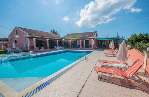 Georgia Apartments are set in Sidari in north Corfu. This basic accommodation consists of 7 apartments with an exterior swimming pool and small kids’ pool by the side.
