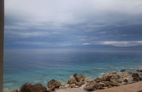 This place is just next to the sea side.If you ever dreamed to get your vacation at a simmilar place,now it's your chance.This is perfect for couples and families.If you desire to swim right away,here,you have the potentiality to do it,no where else you can do it.that's why it is unique.There ia a bedroom (double bed),a large room (L/R) with fire place,t.v,a/c,and a single bed(there is also a,four chairs table).The kitchen fully equipped and a sofabed,the w/c is next to the bedroom.We are at your disposal to be in touch with me at anytime in 0,0,3,0,6,9,8,1,3,1,0,1,1,3,.Our veranda (balkony)provides relaxing moments with the stunning view during both day and knight.The beach in frot of the house looks like private, ruther than swimming, you can fish,walk along side of the beach,or canoeing.At Derveni there is a big market for any kind of shopping.There are cafe-bars, clubs,restaurants,tavernas etc.