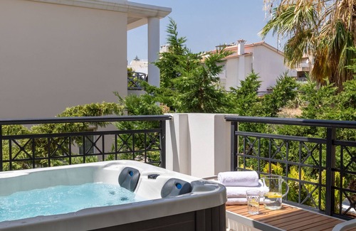 This stylish mansion to stay is perfect for group travel offering 7 bedrooms, 6 bathrooms, hot tub and a wonderful garden with a private pool that will offer you a memorable stay in Greece.
