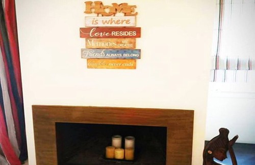 It is an double room appartment, with a large comfy couch in the living room as well as a fire place, and a flat tv screen.