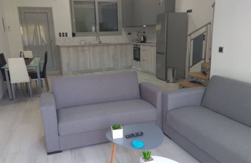 We have a beautiful bathroom and a shower cabin, a fully equipped kitchen, a dining area and a spacious living room with 55' smart 4K TV.