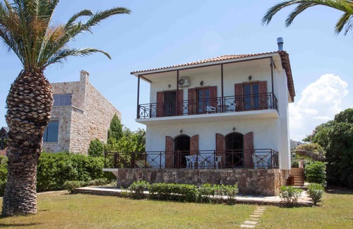 The house is a two and a half floor building, surrounding by a beautiful garden with a BBQ, right in front on a quiet beach, one hour and 30 minutes by car from Athens. The place is a small piece of paradise, for splendid holidays for you, your family and friends. It should be considered for winter vacations also (up to 12 persons during winter season). Besides the two fire places and central heating, the mountainous village Trikala is only 30 minutes away by car, and the ski center of Zeiria 35 minutes away.