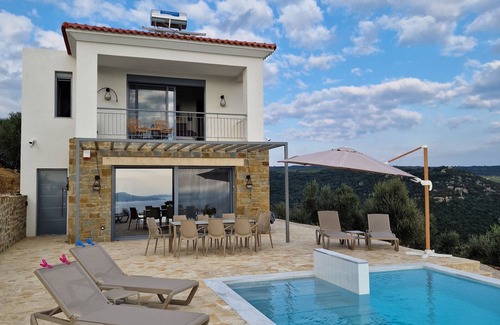 Meerblick und Bergblick, alleinstehendes Haus mit Pool, Barrierefrei im EG is located in Foinikounta. Meerblick und Bergblick, alleinstehendes Haus mit Pool, Barrierefrei im EG provides accommodation, featuring Security/Safety, Entertainment, Child Friendly, among other amenities. This Villa features Security/Safety, Entertainment, Child Friendly, to make your stay a comfortable one.