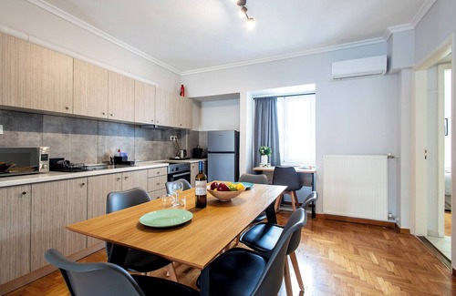 Immerse yourself in the cozy embrace of our 6th-floor Athens apartment, designed with your comfort in mind. This space is outfitted with modern conveniences: air conditioning, a fully furnished kitchen for your culinary creations, and a 50" flat-screen TV with streaming services for entertainment. The private bathroom, complete with a shower, hairdryer, and complimentary toiletries, ensures your daily refreshment. Relax into the warm and elegant living room and and feel like your home.