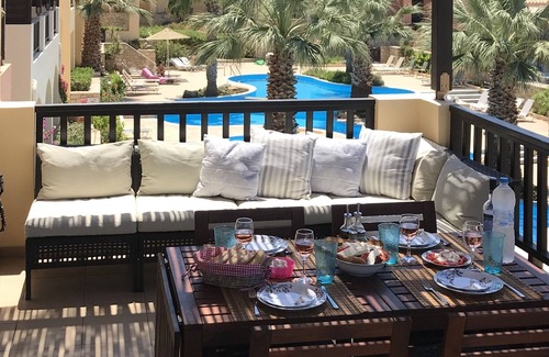 Apartment No 10, is a stylish new 2 bedroom air conditioned apartment just meters away from the sea. With a large communal pool and shallow children's pool, it is an ideal base for a family holiday. The outside dining area provides the perfect setting in the evening to enjoy a Mojito or have nice romantic dinners. You can enjoy the tranquility of having sun downers whilst watching the sunset over the Cretan sea !!!