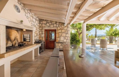 Forget your worries in this spacious and serene space. The villa is consisted of three bedrooms with ensuite bathrooms as also a functional kitchen. All rooms are equipped with smart Tv's and air condition for your convenience. The exterior place is equipped with a large swimming pool surrounded by sun beds and umbrellas as also an exterior living room with sodas and dinning table There is also a large charcoal bbq and a wood to prepare your dinner under the stars. Give yourself a unique moment!