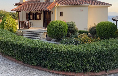 This exclusive two bedroom house is perfectly located on a slope right above the sea. It is surrounded by olive trees, lush gardens, offering stunning views and direct access to a private beach. This living area will greet you with cosy snug tone with a tv and a dvd, dining room and a traditional kitchen fully equipped.