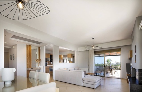 Villa Aviana is nestled in a peaceful neighborhood in Gerani, close to Platanias, where you can explore charming shops, beaches, and vibrant nightlife. With its modern design, this villa offers four comfortable bedrooms and three bathrooms. The standout feature is the serene garden, surrounded by sunbeds and umbrellas for relaxation after a refreshing swim in the private pool. A BBQ area is also available, along with toys for young guests to enjoy, ensuring a memorable stay for the whole family.