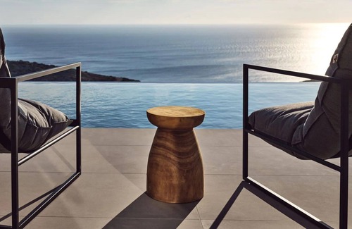 These suites are built with absolute relaxation in mind, and their stone element blends perfectly with the surroundings. Each Suite measures 50 sq.m. and can comfortably accommodate 2-3 guests, as there is a bedroom with a king-sized bed and a sofa-bed in the living room. The bedroom is the very definition of luxury, as it features a bathtub and an en-suite bathroom with a shower! The designers put additional care and attention to the enjoyment of the fantastic view – the frontal side is, essentially, a wall-sized window, so that no matter where you sit inside the suite, you can admire the blue of the Ionian Sea – even the port of Agios Nikolaos and the neighbouring island of Kefalonia. Each Suite features its own private 11.8m x 3m swimming pool, with sunbeds, parasols, Jacuzzi function, outdoor shower and absolute privacy! Furthermore, the built BBQ and the outdoor dining area guarantee many hours of fun and recreation!