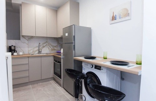 Welcome to our stylish brand new apartment near Megaro Mousikis, where comfort and convenience await you. This beautifully designed space offers a cozy bedroom with a comfortable double bed, ensuring a restful night's sleep for up to two guests. The bedroom features ample storage space for your belongings, ensuring a clutter-free environment during your stay. Adjacent to the bedroom, you'll find a shared living area that boasts a cozy sofa bed, providing additional sleeping arrangements for one guest.