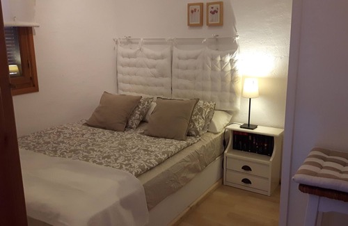 Our small guest house is lovingly designed and lies in the upper part of our property with olive trees and small fruit-trees, directly on the way to the picturesque beach of the Achata bay on the east coast of the island. From the big solar terrace with deck chairs and garden furniture you enjoy the dreamlike view of the surrounding area. The living space in Mediterranean style is equipped with air-conditioning / heating (including), CD player / radio. The inviting living-room furniture offers a 3rd sleeping possibility for a child. The well equipped kitchen area with a seat bar is open to the living space. Comfortable bedroom in cosy atmosphere. Shower / WC (incl. towels for the beach, hair dryer, iron). Towels and bedclothes are changed all four days except of the winter season.