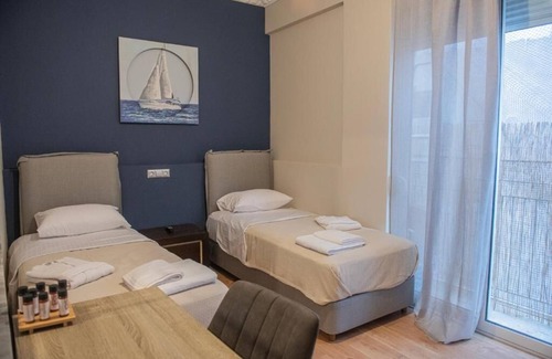 Brand new renovation. Enjoy your center in the center of Piraeus. Three bedrooms all equipped with smart tv and ac. Big common space with a big bar at the entrance . Ideal for groups of 4-8 people. WiFi