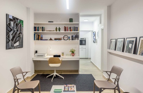 Brand new studio located in the heart of Athens next to Metro station Megaron Mousiki. The studio has a 25 sq.meters floor space and is located at the lower ground floor of the apartment building, looking at a small private terrace/garden. It is decorated with nice paintings, making an art atmosphere. It has a safety external door.