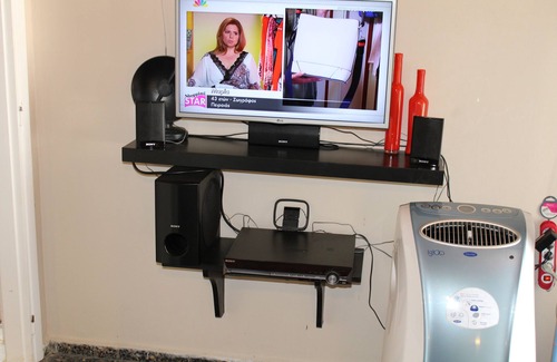 The master bedroom has a double bed, a floor air conditioner, multiple hangers, a closet & a door that leads to the backyard. The bathroom has a shower with a curtain. Here you can also find some necessary essentials like detergents. The second bedroom has one single bed, a small window and a modern floor fan with ionization mode. The living room with the main entrance is fully furnished and has a TV, a DVD player / Home Cinema, a couch that can be converted to two single beds, a window, and an air-conditioning unit. The kitchen is equipped with all modern appliances.