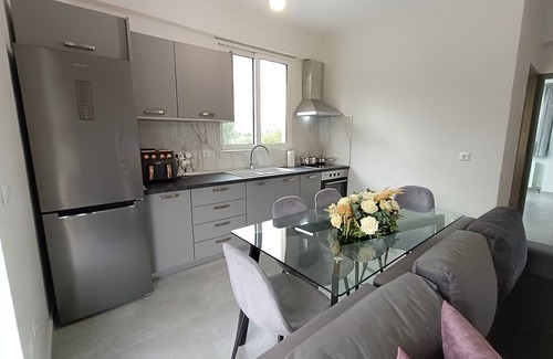 The apartment is very close to the Corfu town and the most beautiful beaches also. The view from the balcony of the apartment is stunning. Very quiet and relaxing area. Free parking area and big garden. The way to the lake is private and only 2 minutes walking.
