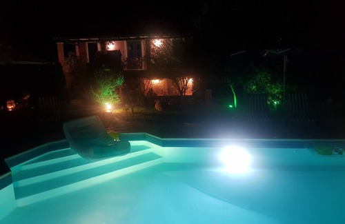 The villa is at the outskirts of a small village named Orologio a very quiet area and there are many beautiful places at close distance such as attractive beaches, mountains for hiking and traditional villages. The villa is surrounded by private area of 2 acres which are suitable for many activities. There are 2 large verandas with view to the garden and pool suitable for dining. Furthermore there is dining area just opposite to the pool. The villa has 4 bedrooms, 2 bathrooms and accommodates 9 guests. There is parking for up to 4 cars. The kitchen includes all the necessary tools and equipments. Also there is a outdoor barbeque working with gaz.