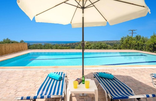Villa Kismet is a wonderful 3 bedroom villa offering fabulous views down to the sea, across to the island of Zante. You'll have your own large, private pool to relax and cool off on those hot summer days, and plenty of space both inside and out. Set in the countryside overlooking the olive groves, the villa is just a short drive from the centre of Trapezaki, with a selection of shops, restaurants and beach. Pool heating, WiFi and air conditioning/heating in all the bedrooms and lounge are included.