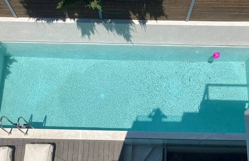 Private Villa, close to the sea-line (400m), with private outdoor pool, with nice yard space, 4 bedrooms (for 6 people), 4 WC, modern design and furniture, with wi-fi connectivity, 5 big Smart TVs, and air-conditioning in all rooms