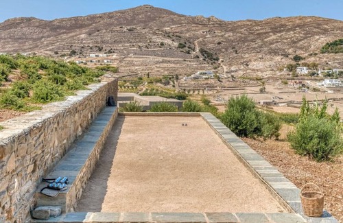 Les aménagements extérieurs sont tout aussi enchanteurs, avec une piscine rafraîchissante offrant une vue imprenable sur les collines, le village pittoresque de Naoussa et la mer scintillante. Pour des soirées inoubliables, un cinéma en plein air permet de se détendre sous le ciel étoilé de Paros.